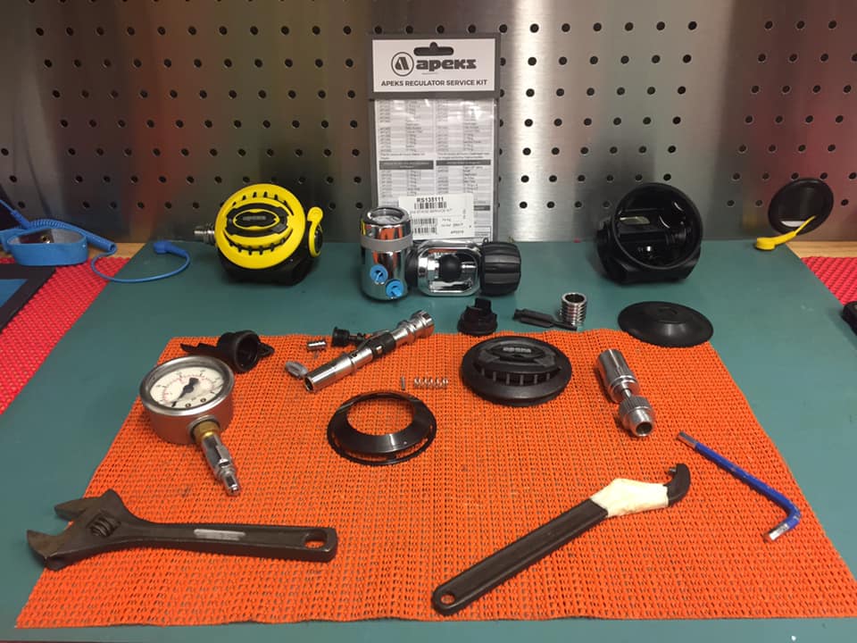 We are able to service your regulators on site here at the Dive A Lot shop. We aim to provide a swift service. Just bring your regs into the service bay and we will be able to tell you how quickly we can have them back to you.